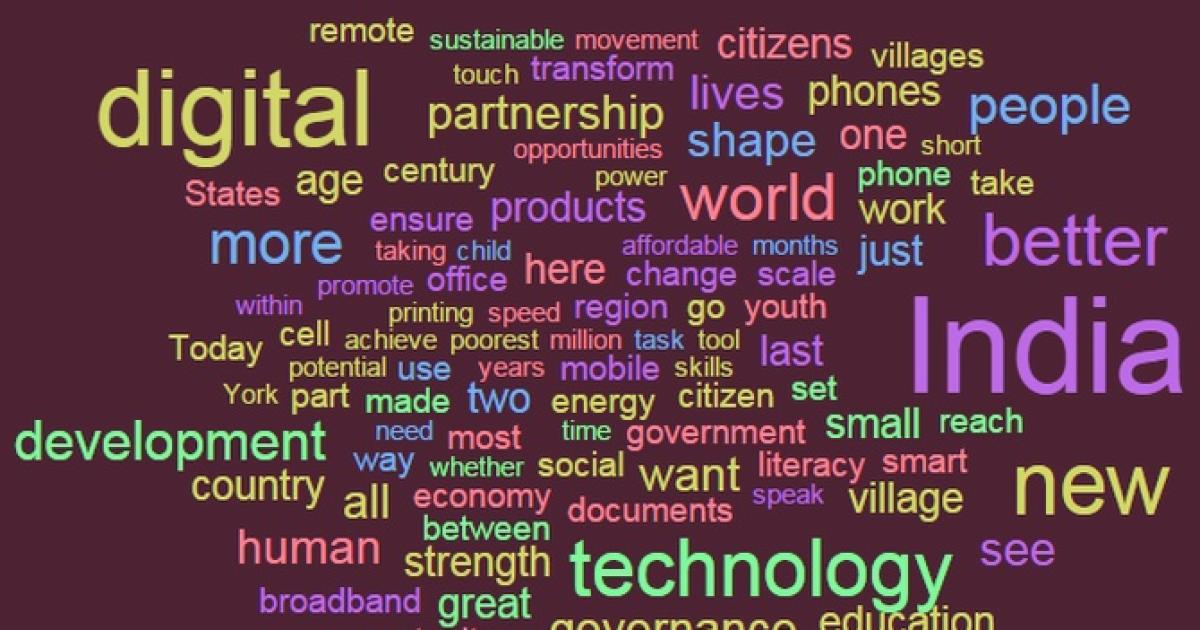 Rediff.com did a word cloud analysis (see the image below) of the prime minister’s speech. The words that appeared more often in the speech included India, digital, technology and new.
