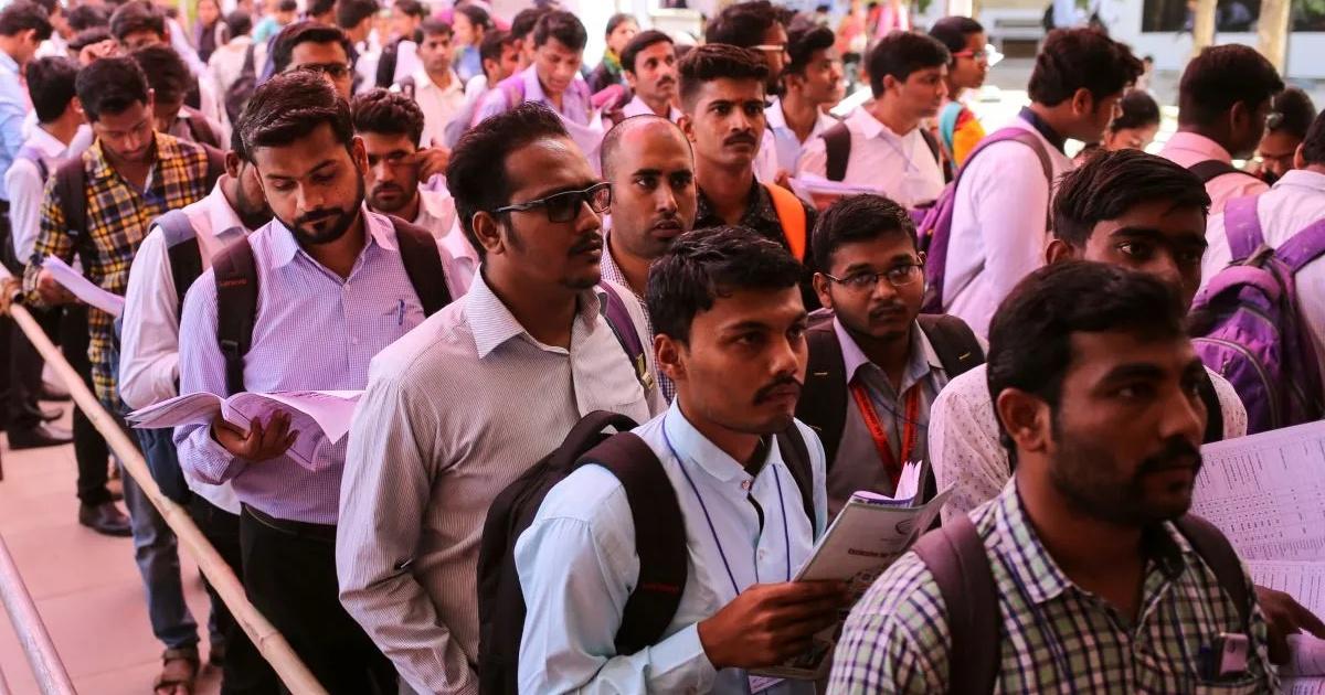 IMAGE: Youth line up at a job fair. Photograph: Danish Siddiqui/Reuters