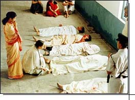 ...Who tells her that Brati had spent his last night at her house and that he and his friends had been murdered outside.