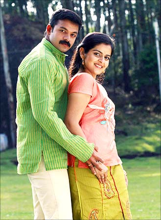 Kalabhavan Mani is Kottayam Gopalan in a humorous role as the owner of the Jayabharathy theatres, the drama troupe.