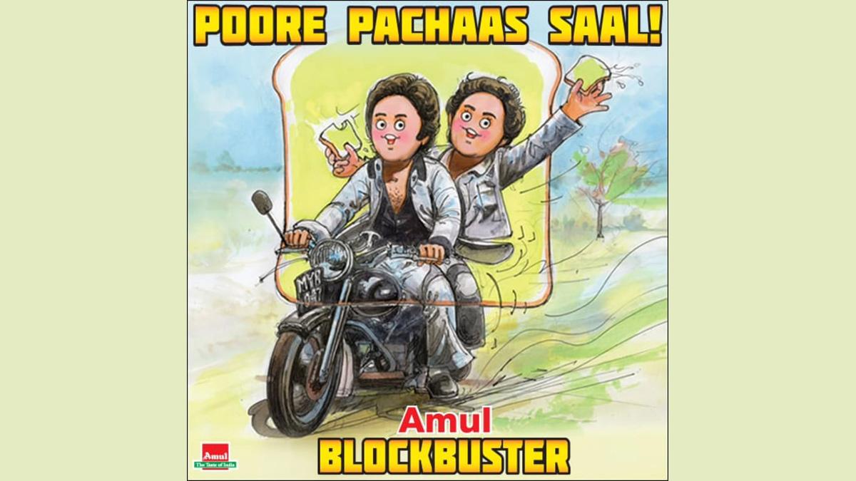 As Sholay has completed 50 years since its release, an Amul ad celebrated 'Poore Pachaas Saal' of the Bollywood cult classic. It was undoubtedly a throwback to the three iconic words 'poore pachaas hazaar', which actor MacMohan delivered in Sholay.