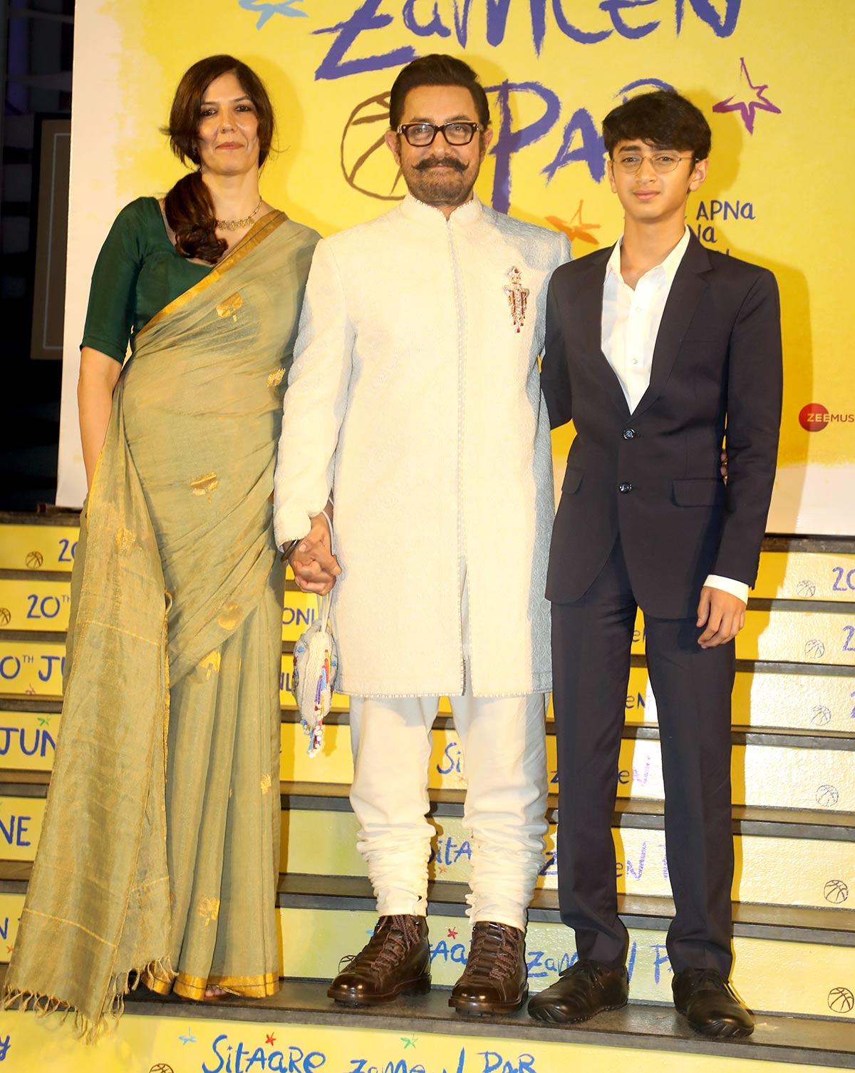 Aamir arrives hand-in-hand with girlfriend Gauri Spratt and younger son Azad.