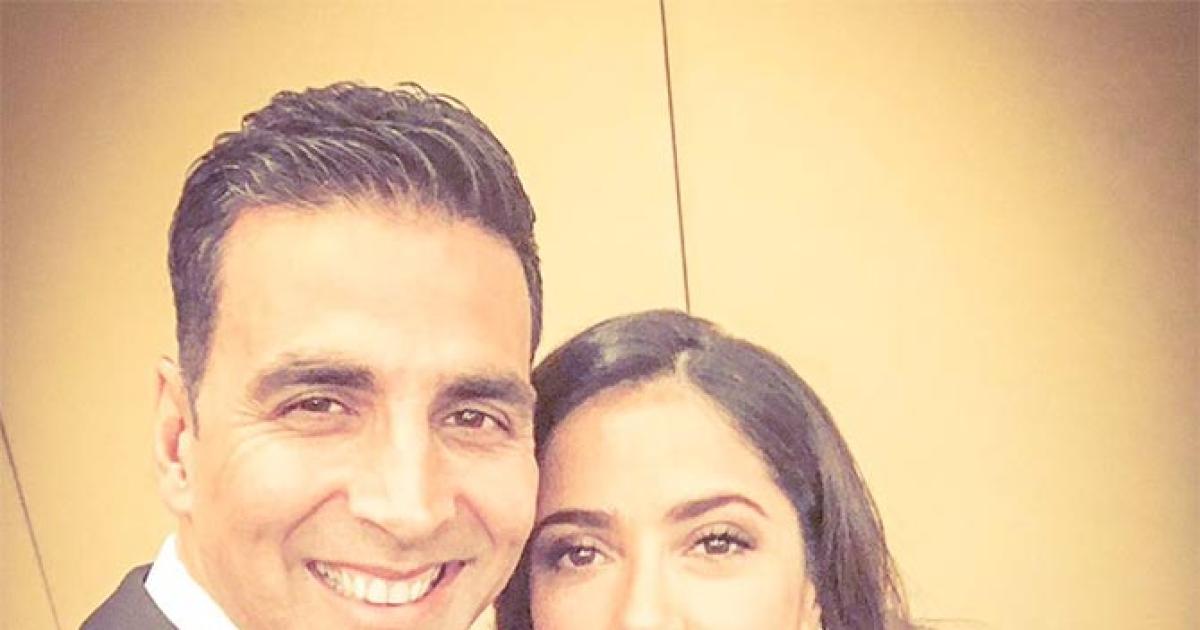 Akshay Kumar shared a selfie with Salma Hayek, above, and tweeted: ‘Selfie of a lifetime... Honouring all the Teachers around the World, #TeachersMatter in Dubai!’