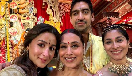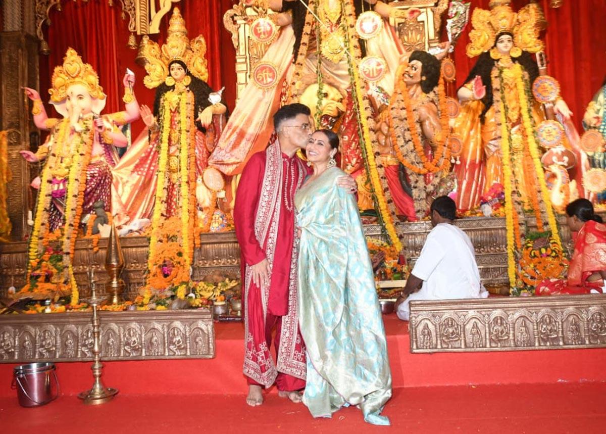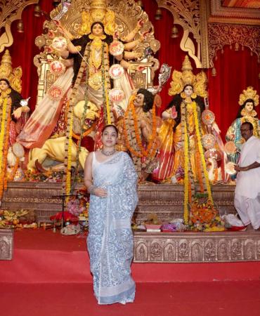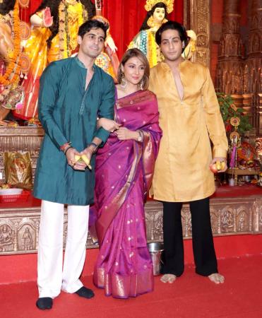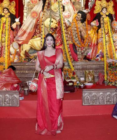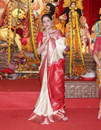 Movie stars arrived at the North Bombay Sarbojanin Durga Puja pandal to seek blessings, partake in the bhog and serve it.