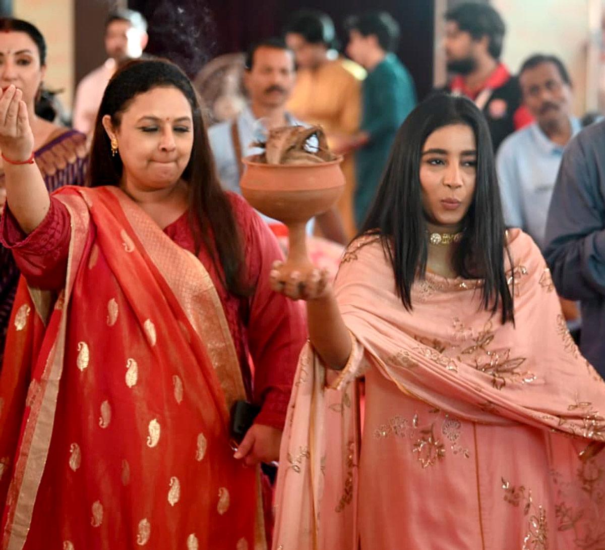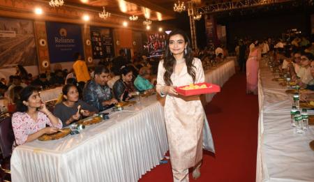 Vaibhavi Merchant serves bhog.