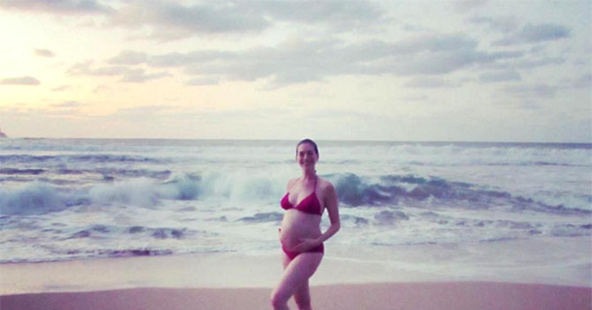 When the 33-year-old actress noticed the paparazzi trying to click her pictures, she took to her Instagram account and shared the first photograph of her bikini-clad baby bump.