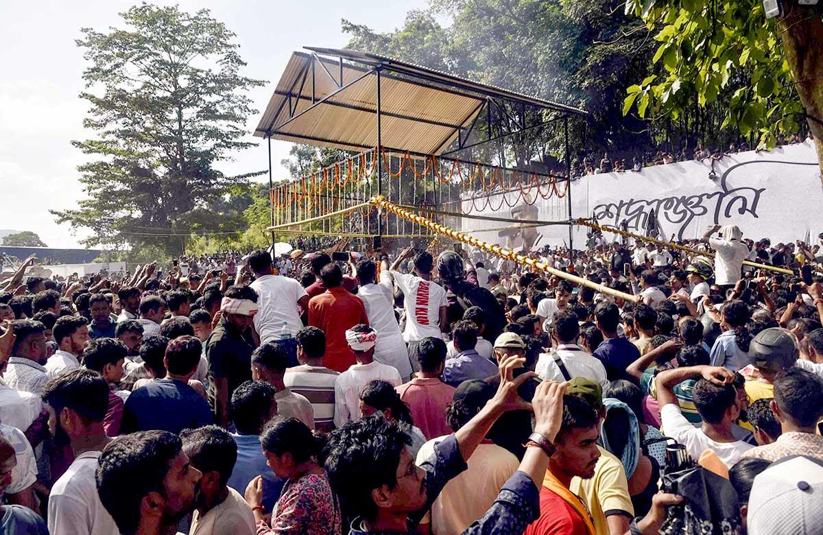 A large number of people gathered around the cremation site since Monday night, and the entire area reverberated with slogans like 'Long Live Zubeen', 'Jai Zubeenda'.