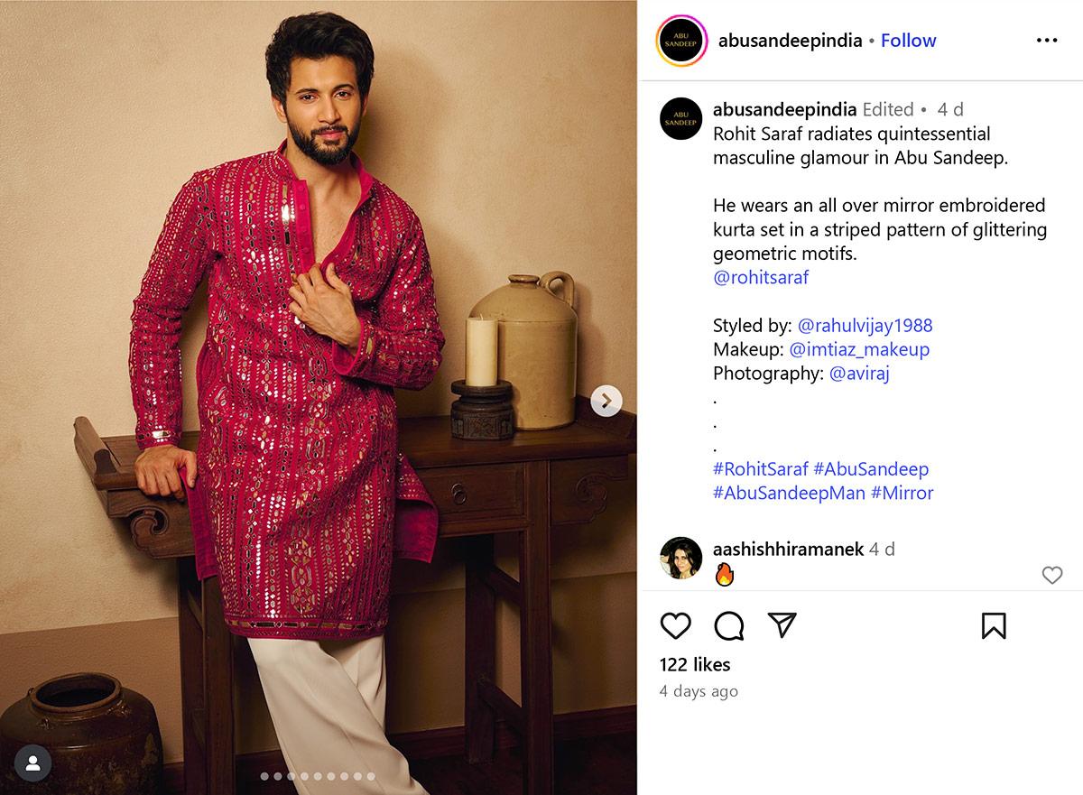 Rohit Saraf makes it to the list thanks to his pink mirror embroidered kurta which makes him look festive ready and how!