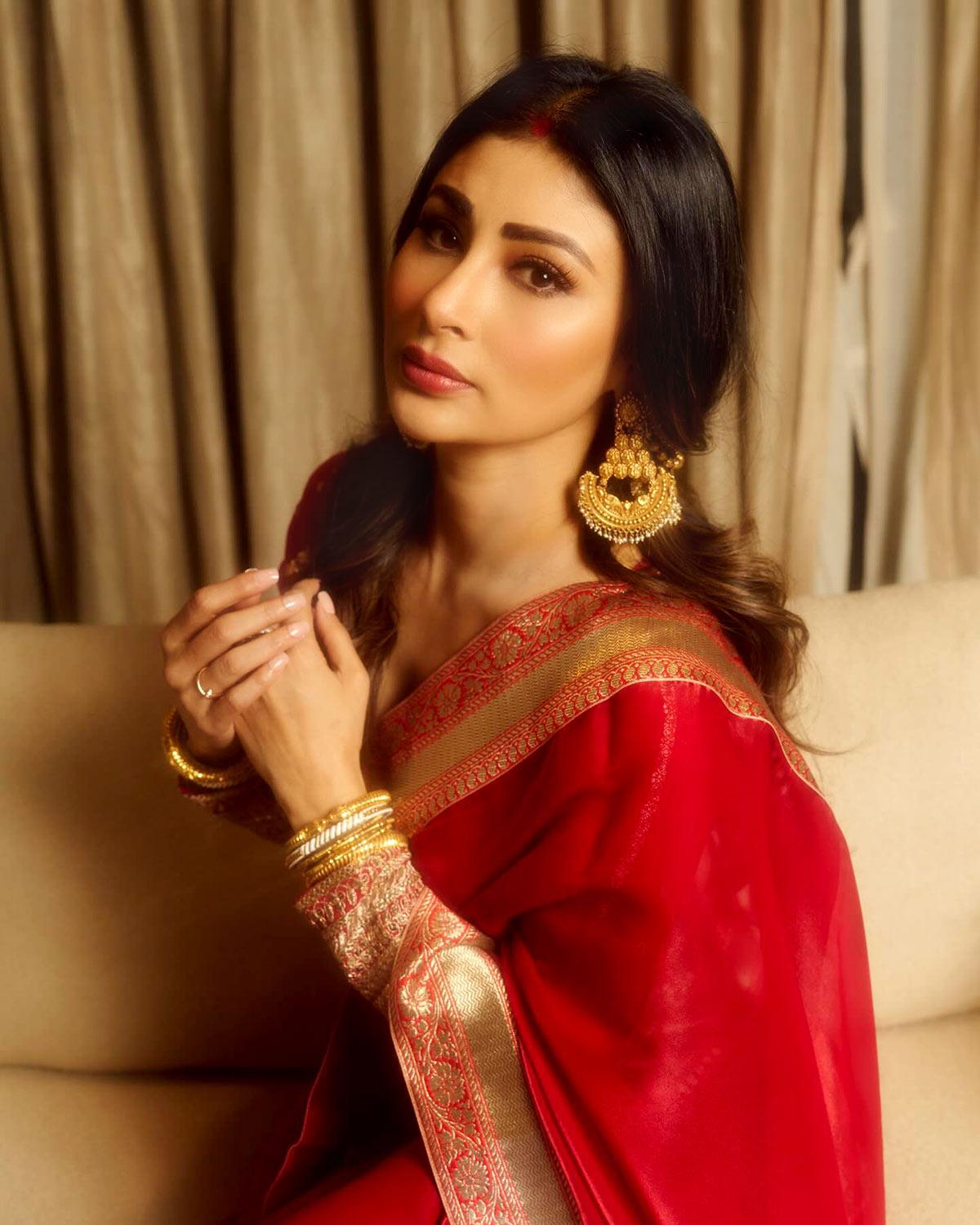 How gorgeous is Mouni Roy in her luminous red sari and traditional gold jewellery?