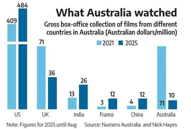 They are expected to end 2025 with Australian dollar (A$) 39 million, or ₹224 crore, in gross box-office revenues, compared with A$13 million (₹75 crore) in 2021.