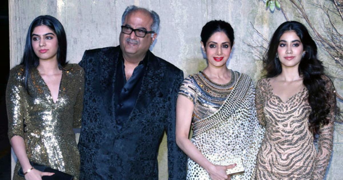 IMAGE: Khushi, Boney, Sridevi and Janhvi Kapoor at Manish Malhotra's birthday party. Photograph: Pradeep Bandekar