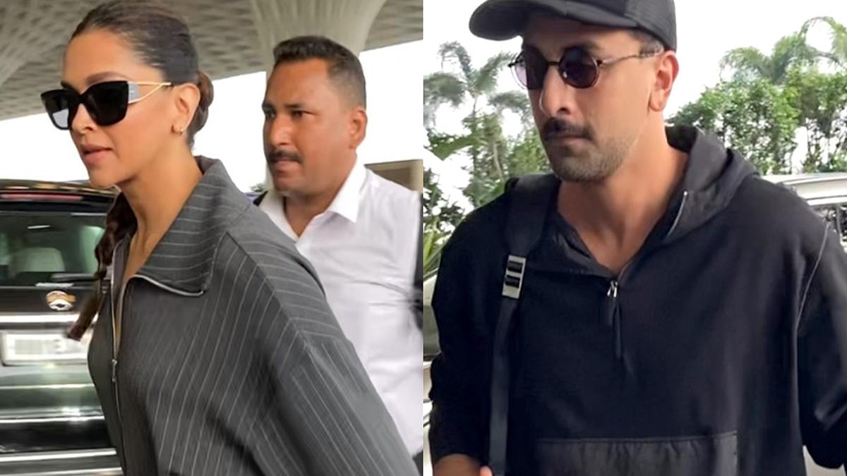 Deepika, known for her effortless airport style, opted for a grey co-ord set featuring a collared zip-up jacket paired with trousers. She complemented the look with minimal accessories -- small earrings, black sunglasses, and a neatly tied bun.