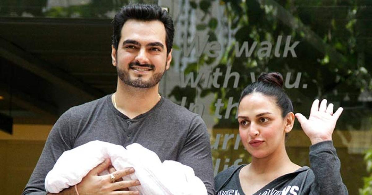 Watch Esha and Bharat step out of the hospital with their newborn.