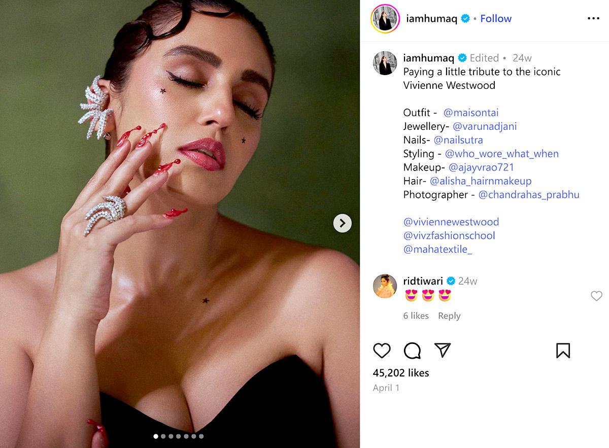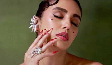 White nails with golden nail jewellery is definitely a good way to glam up like Jacqueline Fernandez.