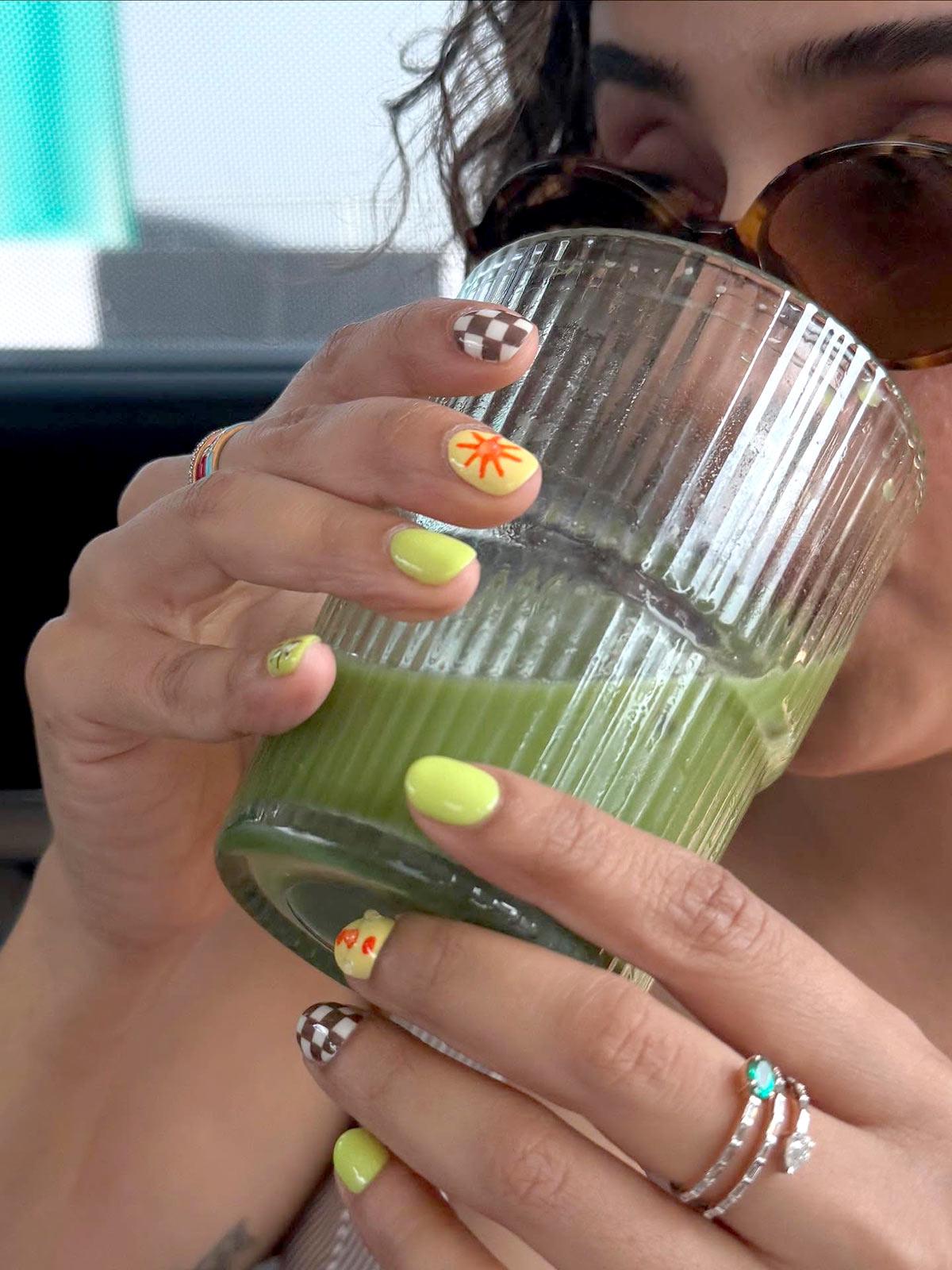 If you love matcha and dandiya nights equally, try Sanya Malhotra's green nail art.