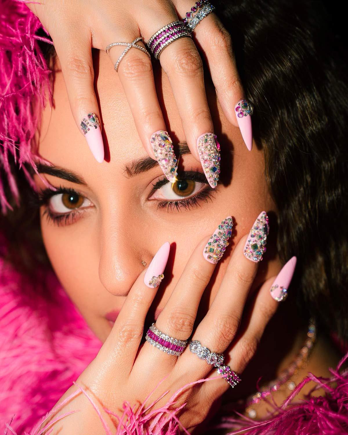 Sonakshi makes it to the list for the second time and her pink nail art with lots of shimmer.