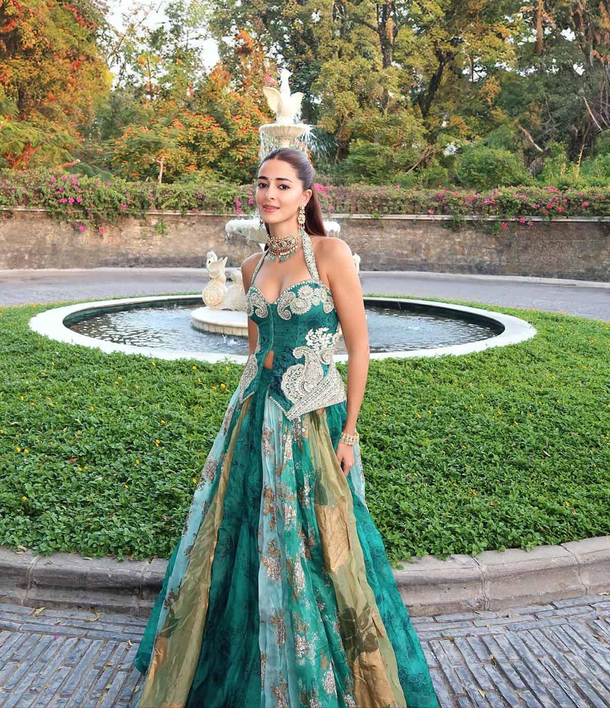 Ananya wears a teal organza lehenga set from the shelves of Bhumika Sharma for one of the ceremonies. It is priced at Rs 110,000!
