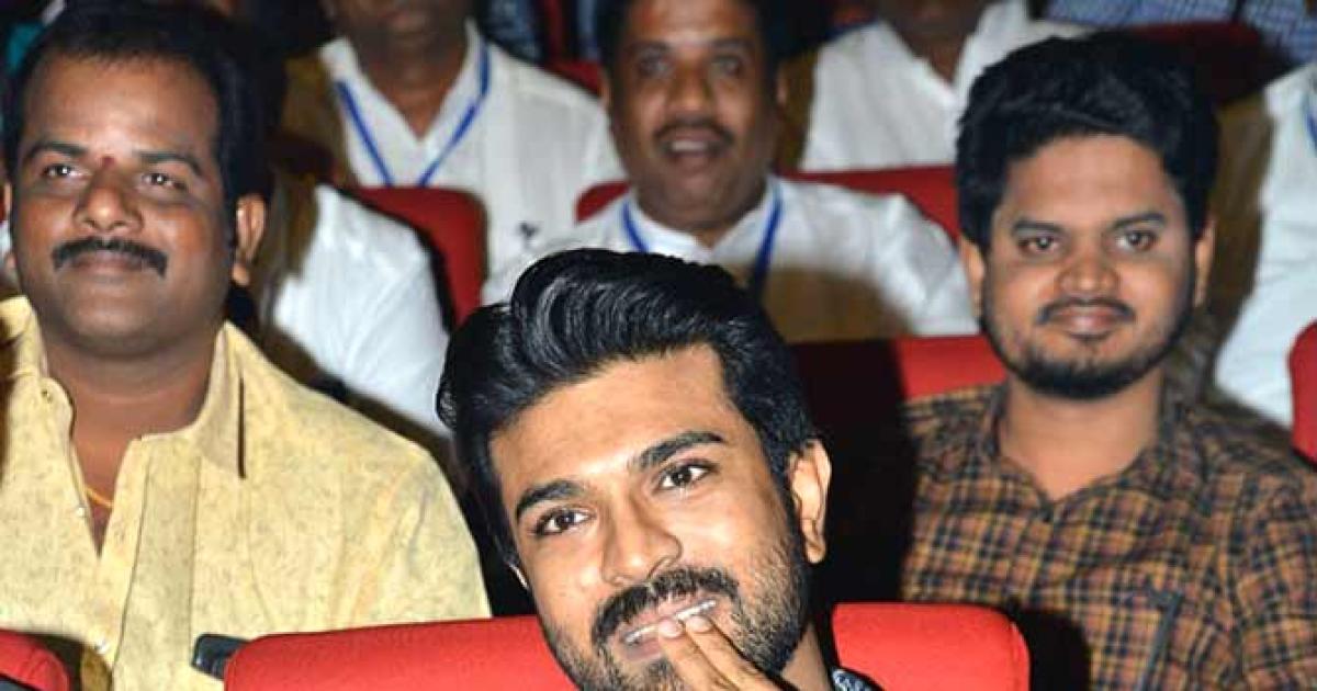 Ram Charan Teja felicitates screenwriter Sai Madhav Burra.