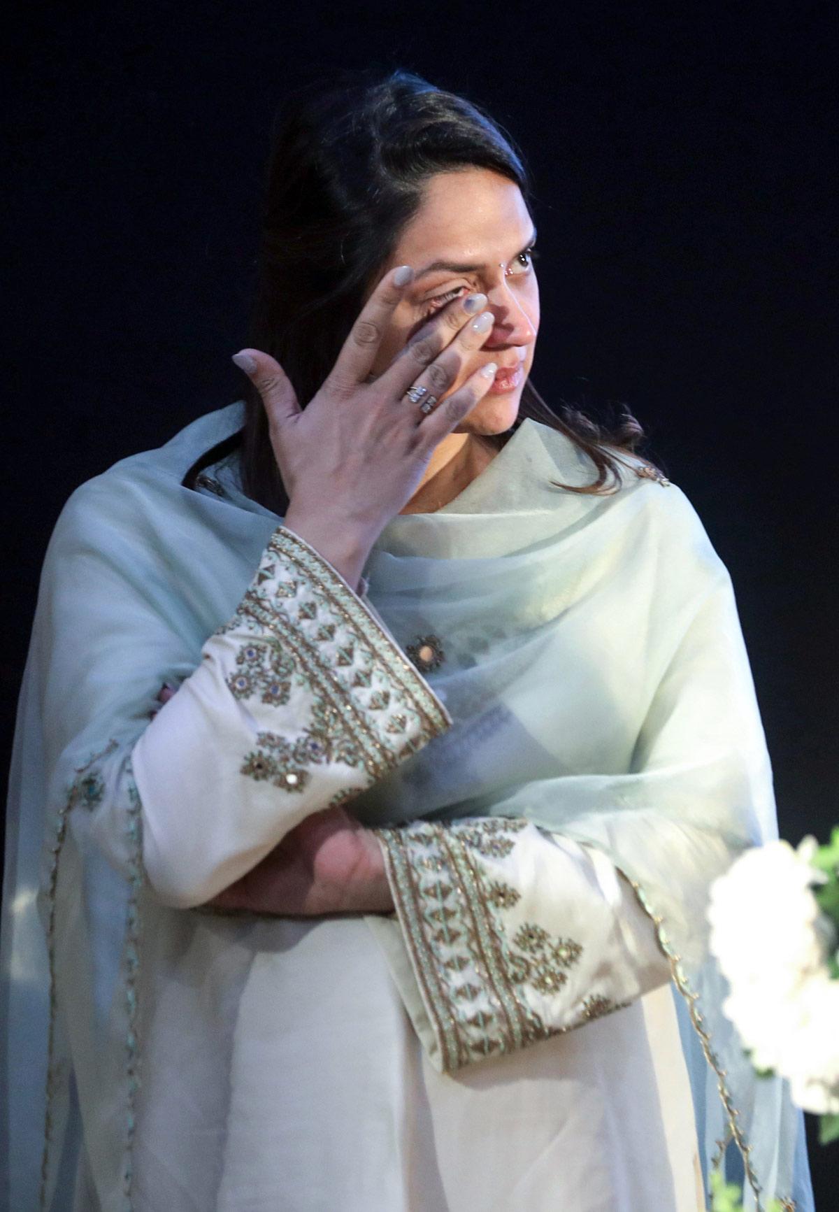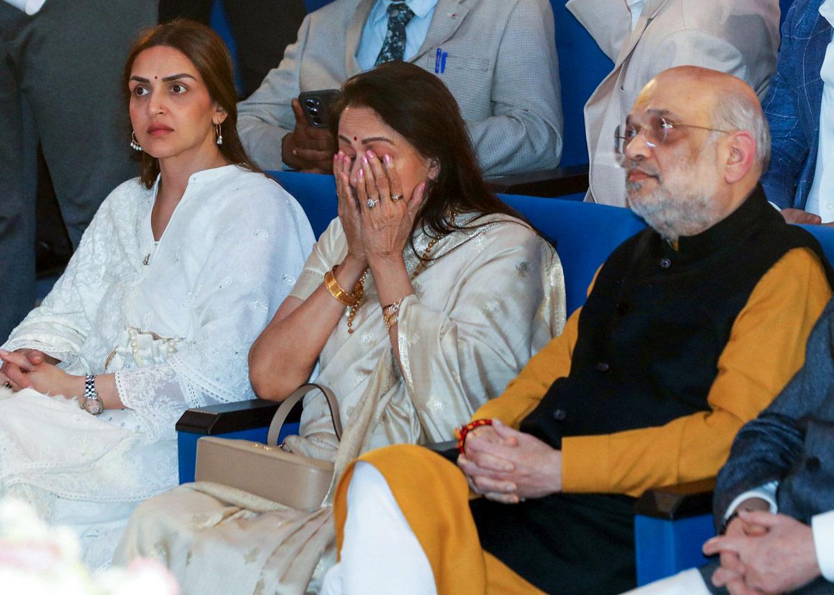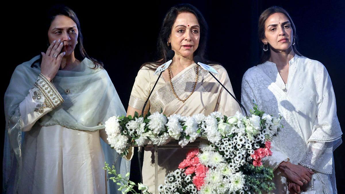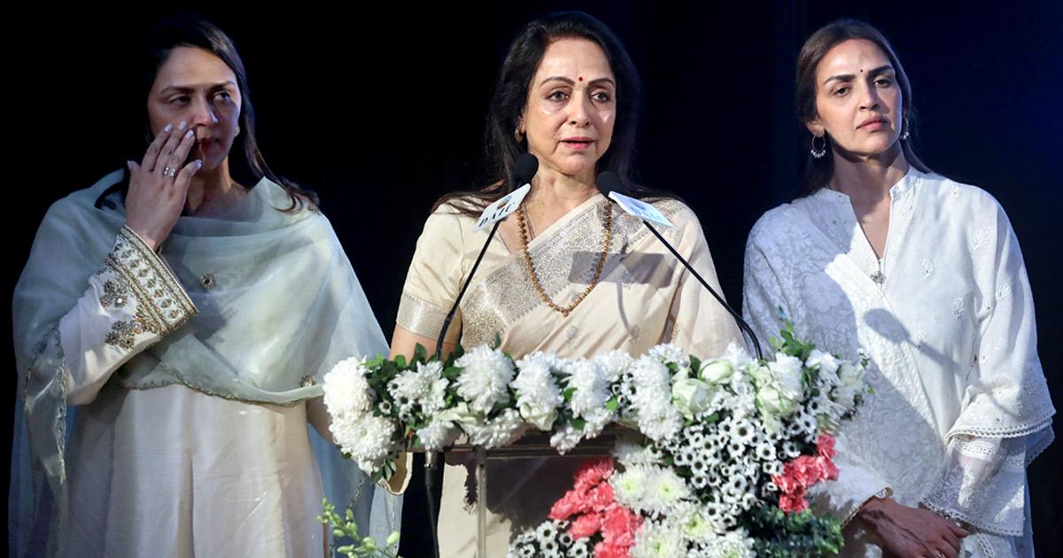 Hema Malini got emotional during her moving speech at the prayer meet.