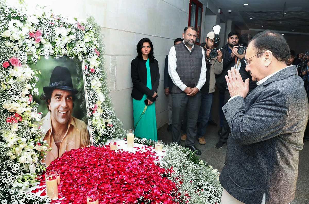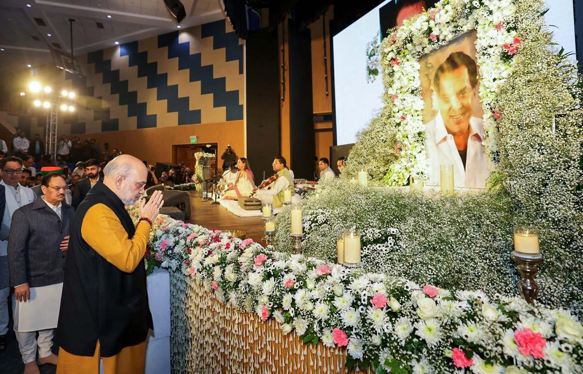 Amit Shah pays tribute to Dharmendra.