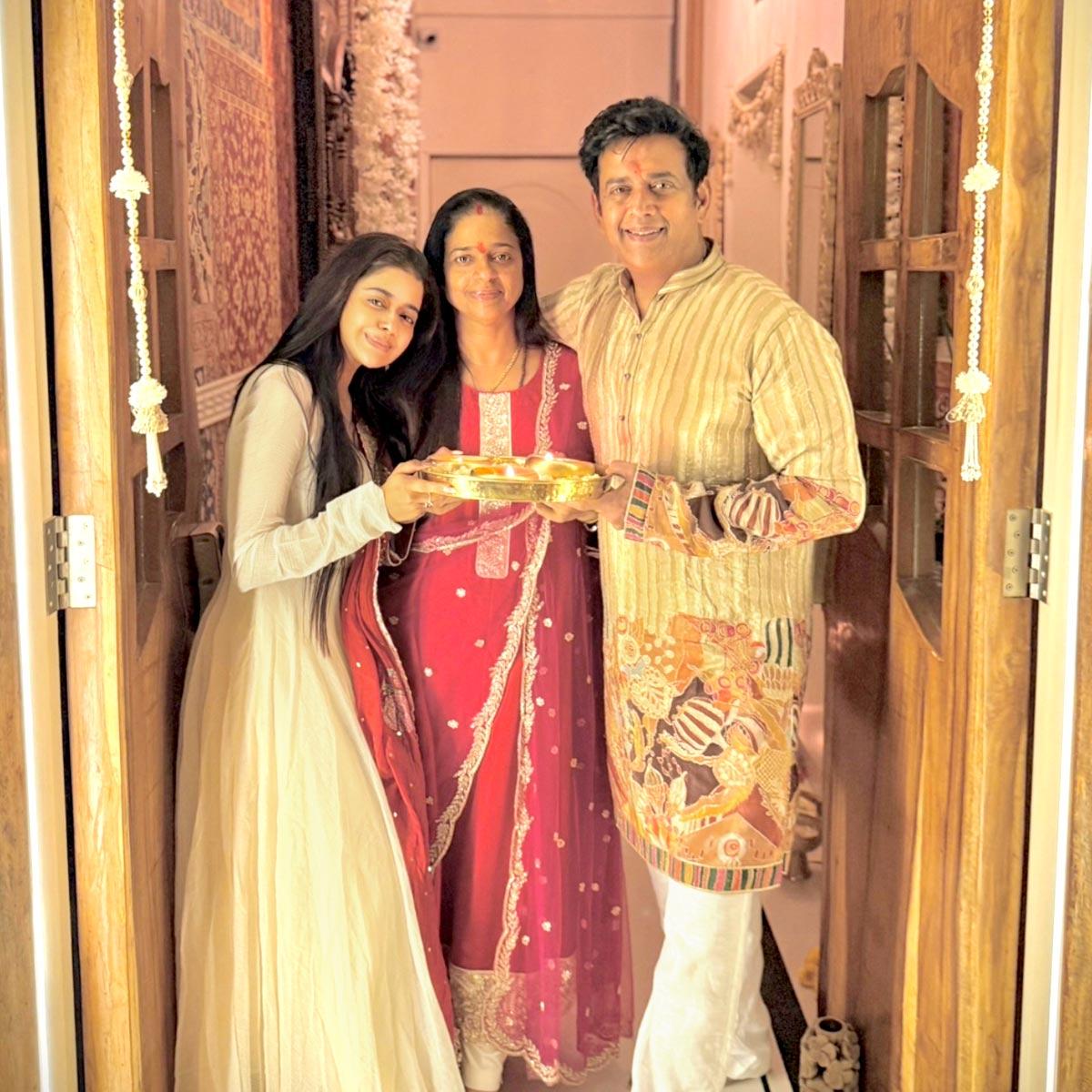 Ravi Kishan celebrates Diwali with wife Preeti and daughter Riva.