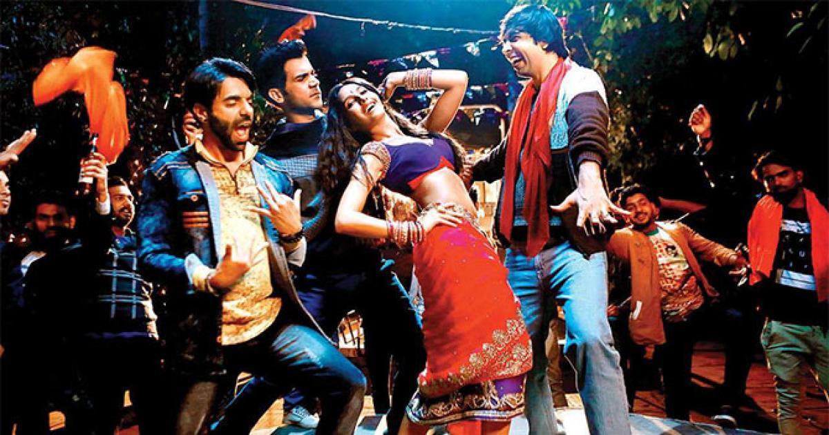 IMAGE: Aparshakti Khurana, Rajkummar Rao, Nora Fatehi and Abhishek Banerjee in Stree.