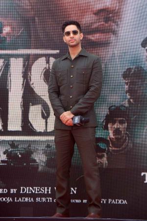 "The main thing that stood out for me about this story is about how young Arun Khetarpal is. I would like to address the young kids sitting over there who've come from school. I hope that when you watch this film, you'll be able to learn something from Arun Khetarpal. He was a very brave, passionate soldier," Agastya said at the event.