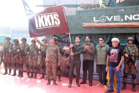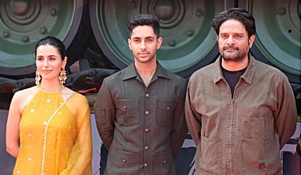 Agastya Nanda plays Second Lieutenant Khetarpal with Jaideep Ahlawat and debutante Simar Bhatia in prominent roles.