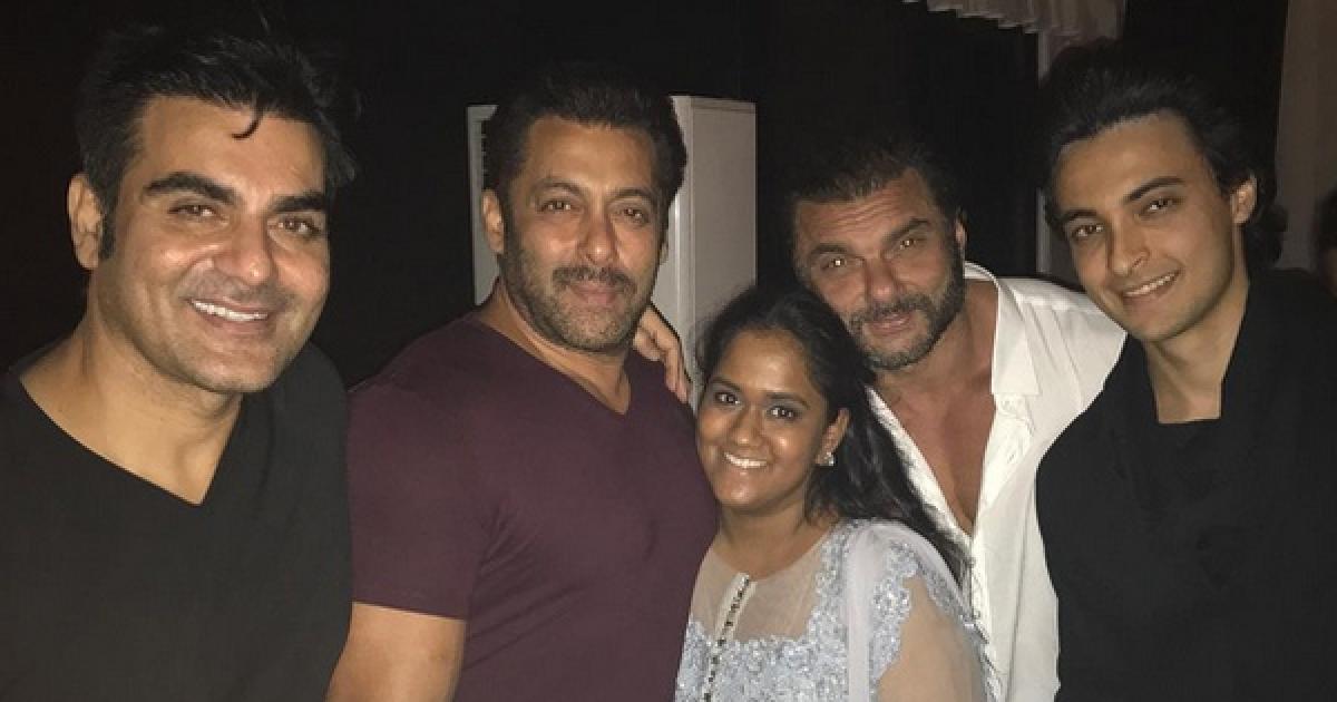 Arpita poses with brothers Arbaaz, Salman, Sohail and hubby Aayush, who is soon going to be launched in Bollywood by Salman.