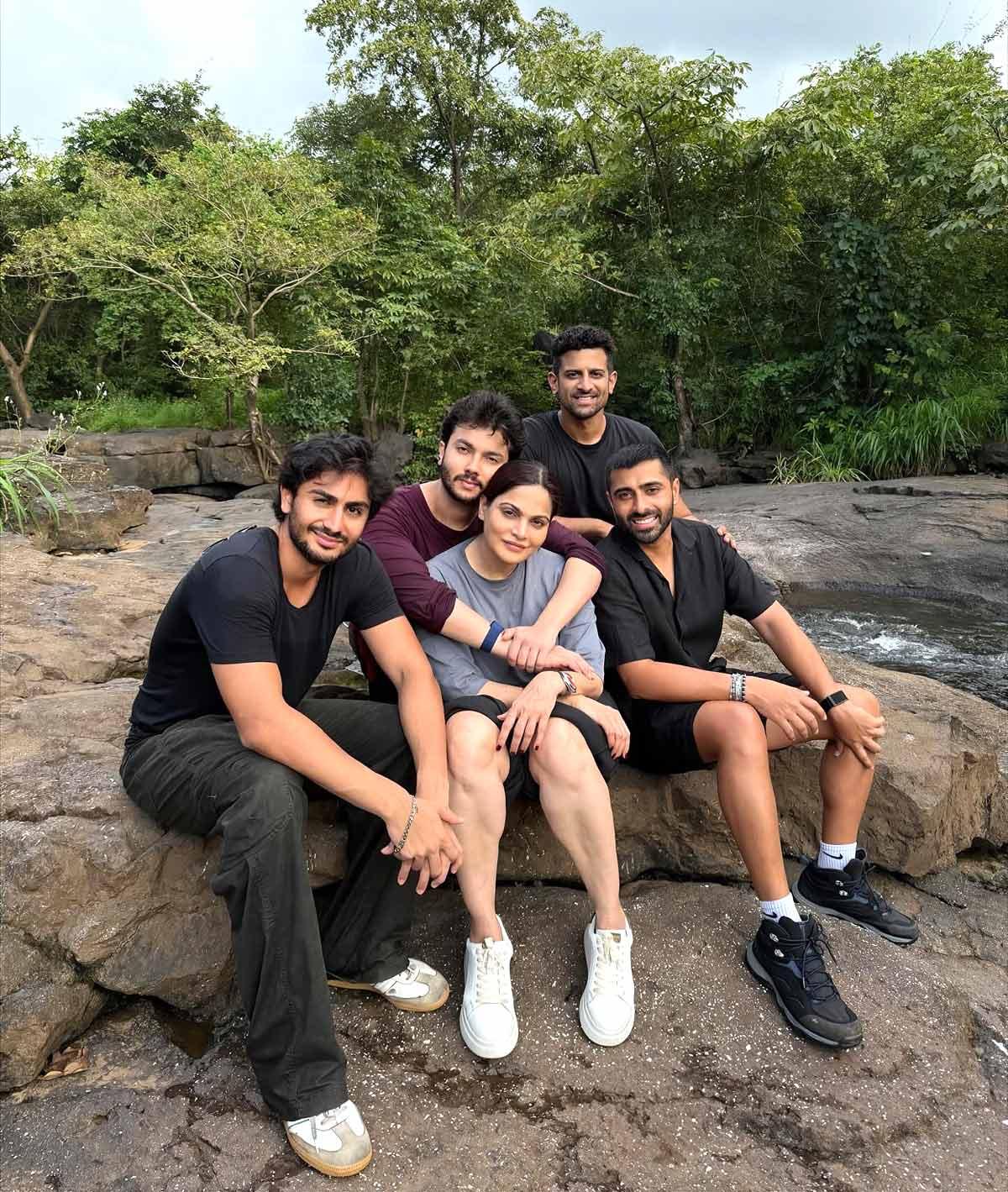 Aunt Alvira Khan Agnihotri gets some love, as she poses with Nirvan, Arhaan and some friends.