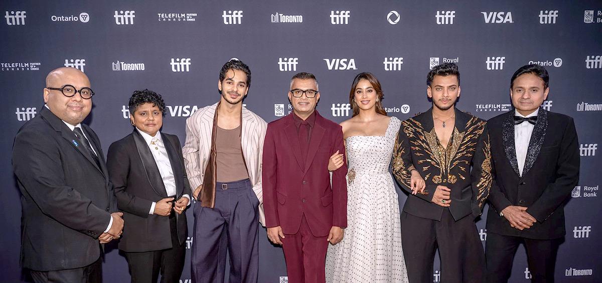 Meet the Homebound team: Producers Somen Mishra, Marijke Desouza, Ishaan Khatter, Director Neeraj Ghaywan, Janhvi Kapoor, Vishal Jethwa and Producer Apoorva Mehta.