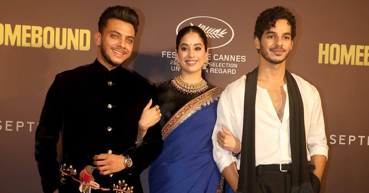 Janhvi Kapoor with her co-stars from Homebound, Vishal Jethwa and Ishaan Khatter.