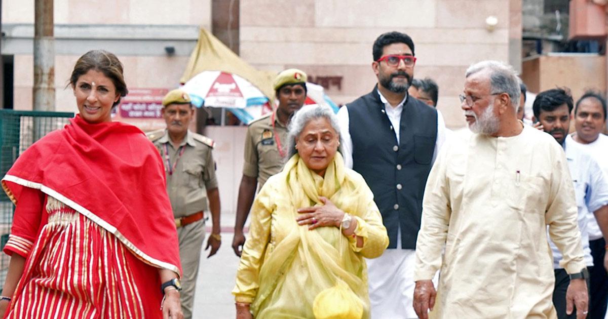 Jaya Bachchan and her children Shweta Bachchan Nanda and Abhishek Bachchan prayed at the Kashi Vishwanath temple in Varanasi on Thursday, July 11, 2024.