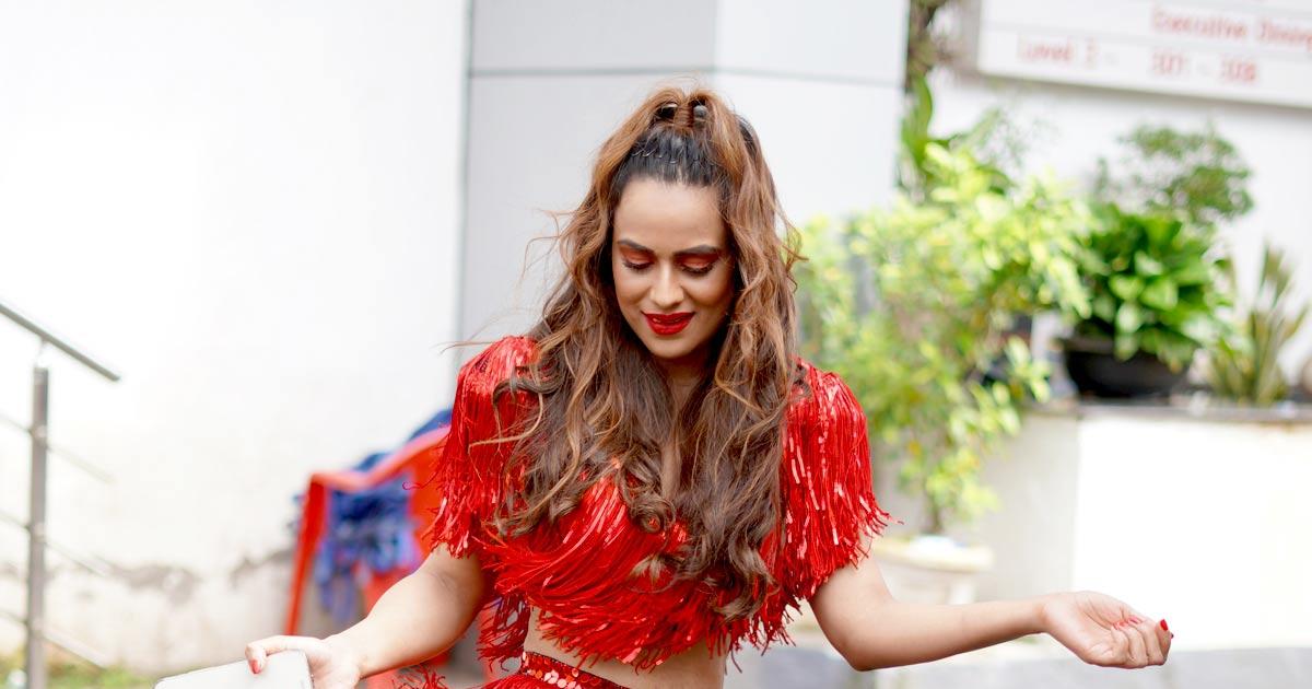 Nia Sharma gives the paps a glimpse of her dance skills.