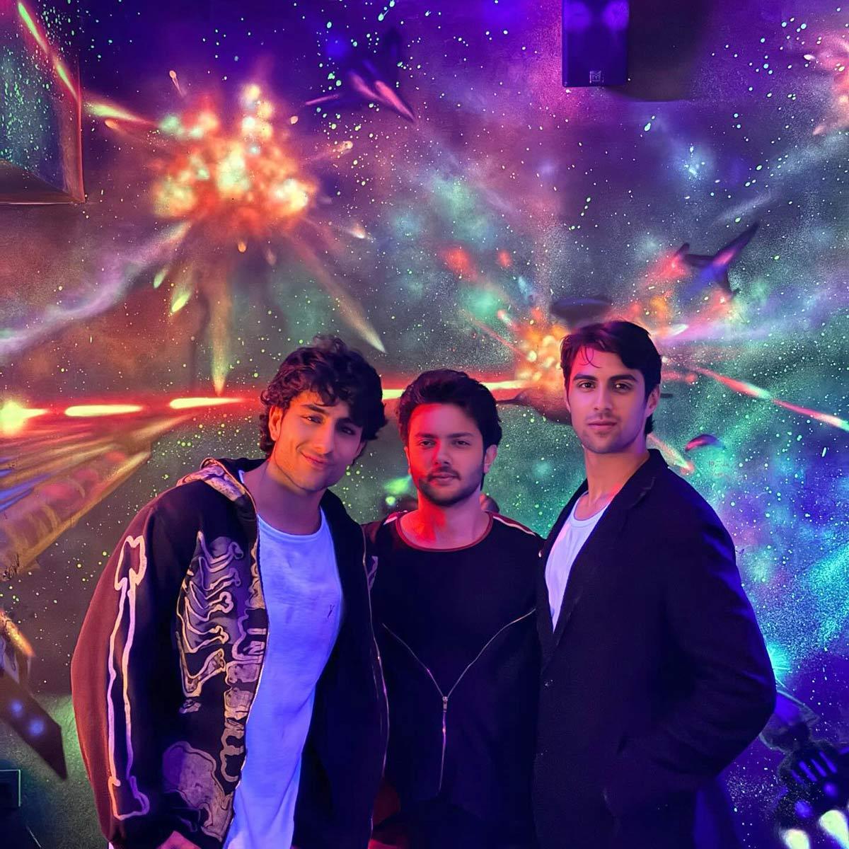 Ibrahim Ali Khan enjoys a night out with buddies Nirvan Khan and Aryaman Deol at a gaming arcade in London.