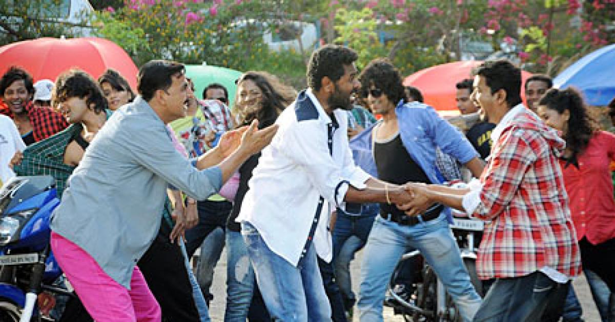 Tamil actor Vijay, who is currently shooting for A R Murugadoss's Thuppakki in Mumbai, was roped in for a friendly jig with Akshay Kumar in Rowdy Rathore by the film's director Prabhuss="inline-block" id="div_arti_inline_advt">