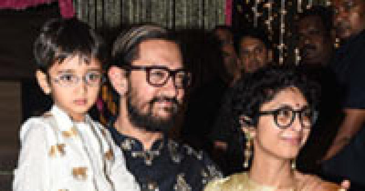 Aamir Khan, wife Kiran Rao and their adorable son Azad pose for the cameras.
