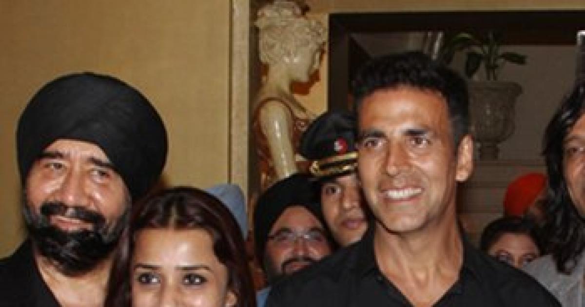 The film's leads -- Amy Jackson and Akshay Kumar pose for pictures with host G S Bawa (in black turban), costar Kay Kay Menon and Punjab governor Kaptan Singh Solanki.