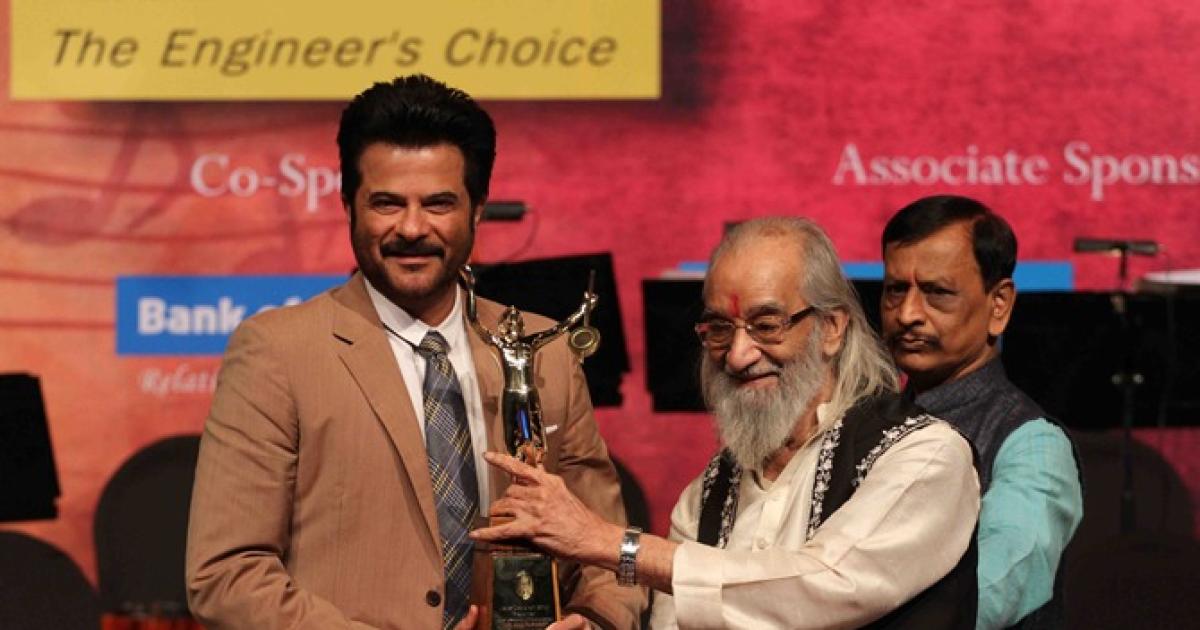 Anil Kapoor, who was admittedly 'thrilled' to be honoured, receives his award from historian and writer Babasaheb Purandare.