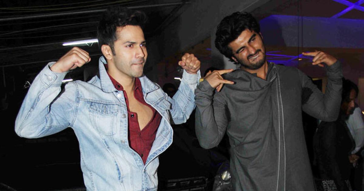 Varun Dhawan and Tevar star Arjun Kapoor fool around for the cameras.