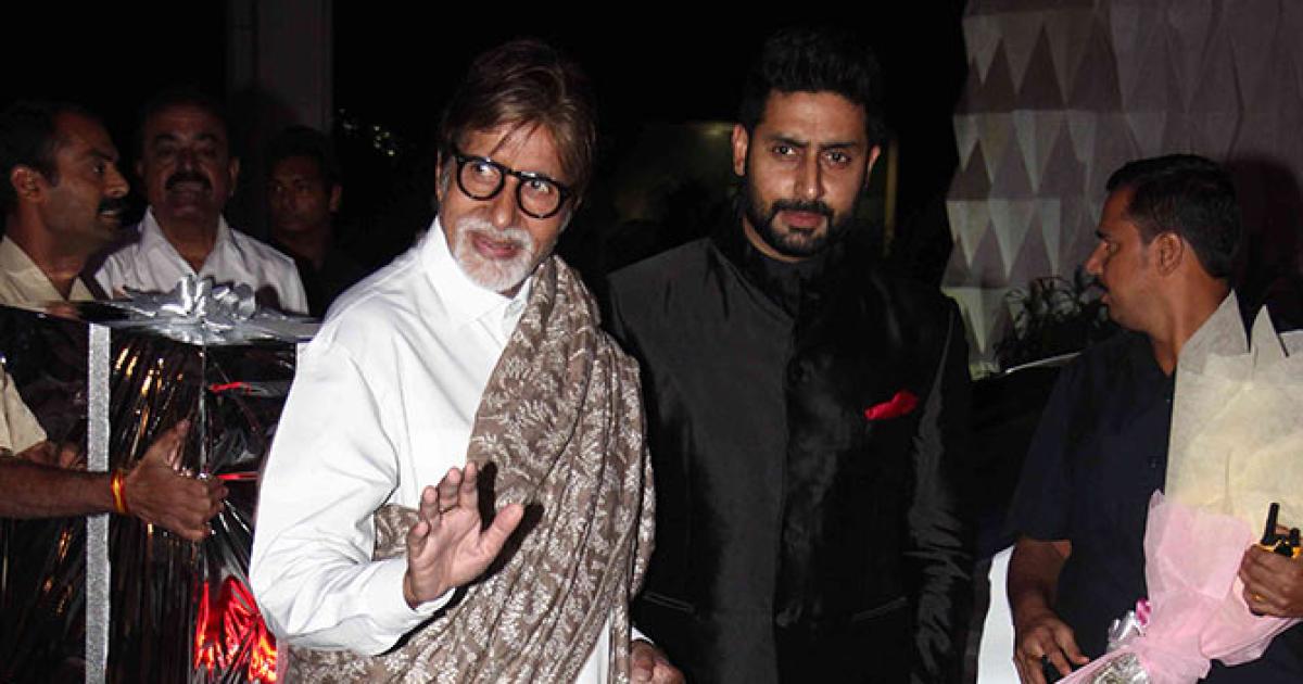Abhishek Bachchan escorts father Amitabh to the star-studded do.