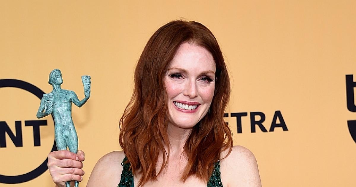 After winning the Golden Globes earlier this month, Still Alice actress Julianne Moore -- looking lovely in an emerald beaded gown, won the Best Actress SAG award.