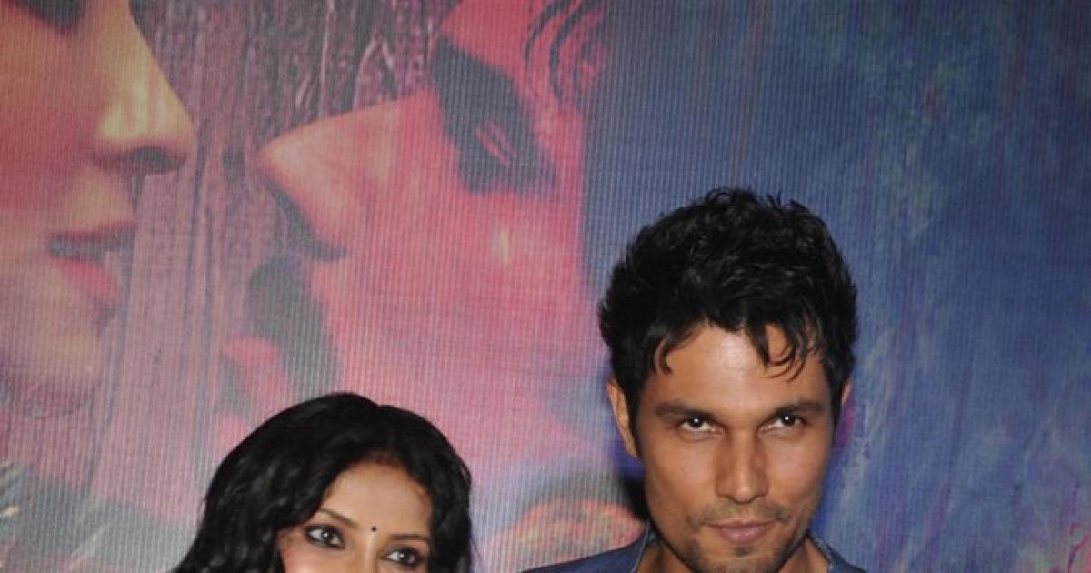 Randeep Hooda and Nandana Sen, who play Raja Ravi Varma and his muse respectively in the film, pose for pictures.