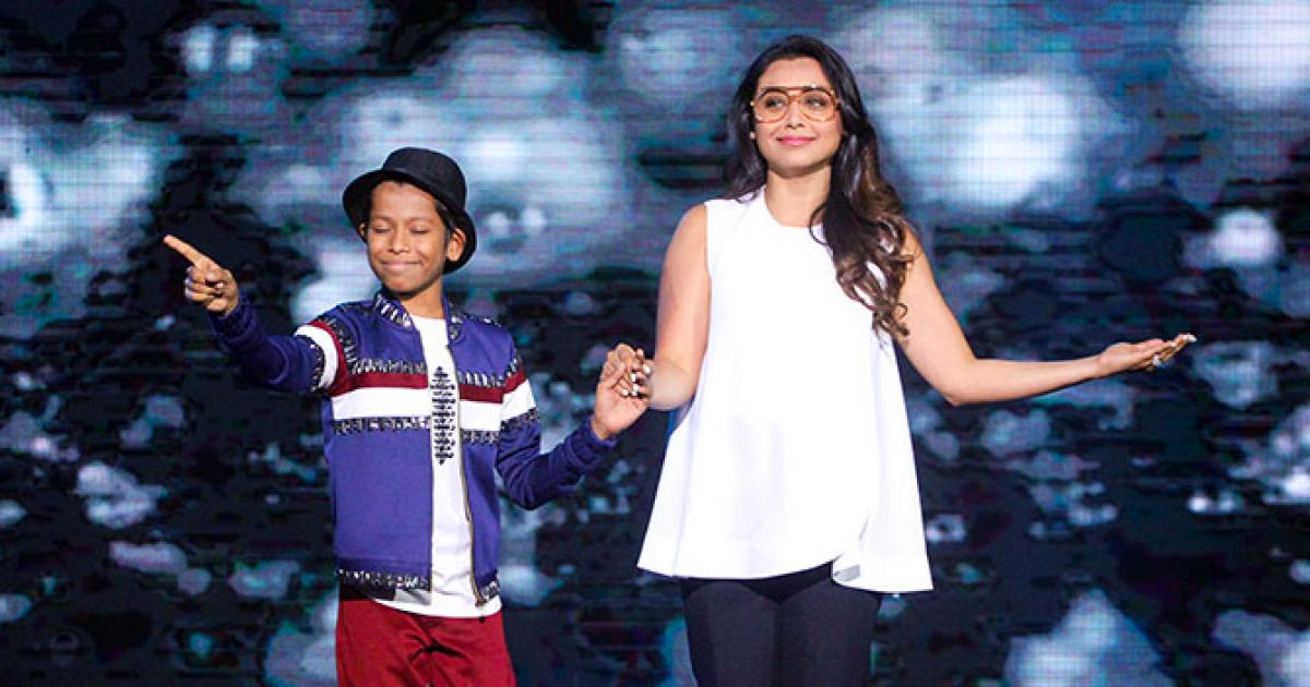 Rani poses with India's Best Dramebaaz 2 fame hosts Jay Bhanushali and Tamanna.