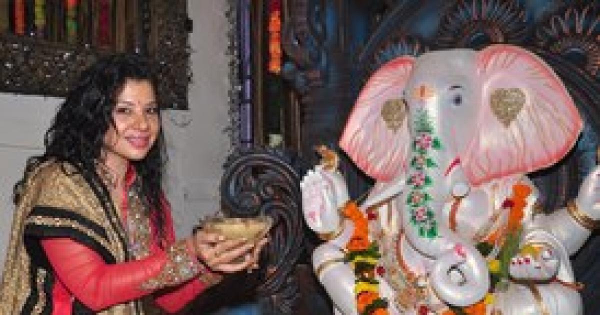 Starlet Sambhavna Seth is seen here offering prasad to the deity at her residence.