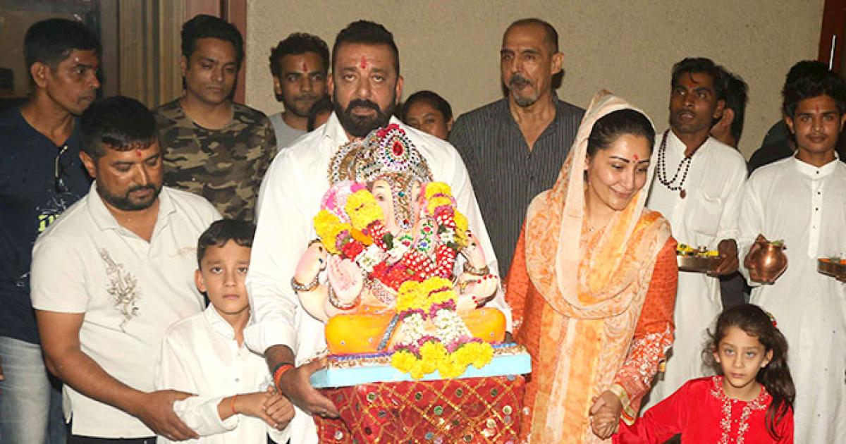 Wife Maanayata and kids Shahraan and Iqra were with him, as he performed aarti outside his residence in Bandra, a western suburb of Mumbai.