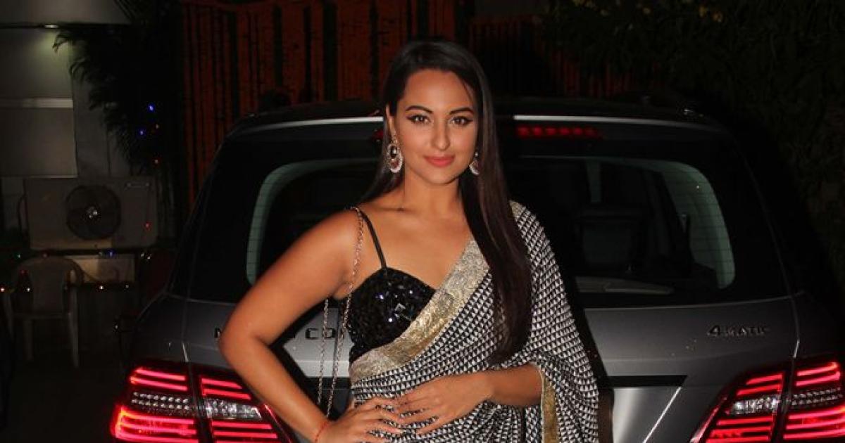 Sonakshi Sinha, who arrived with father Shatrughan Sinha, mum Poonam and twin elder brothers Luv and Kush, showed off her svelte frame in a printed sari.
