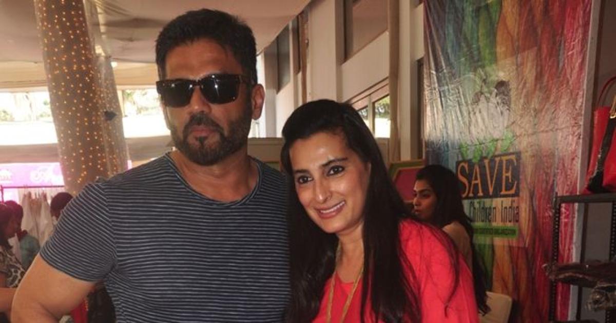Actor-producer Suniel Shetty poses for pictures with wife Mana at the do.