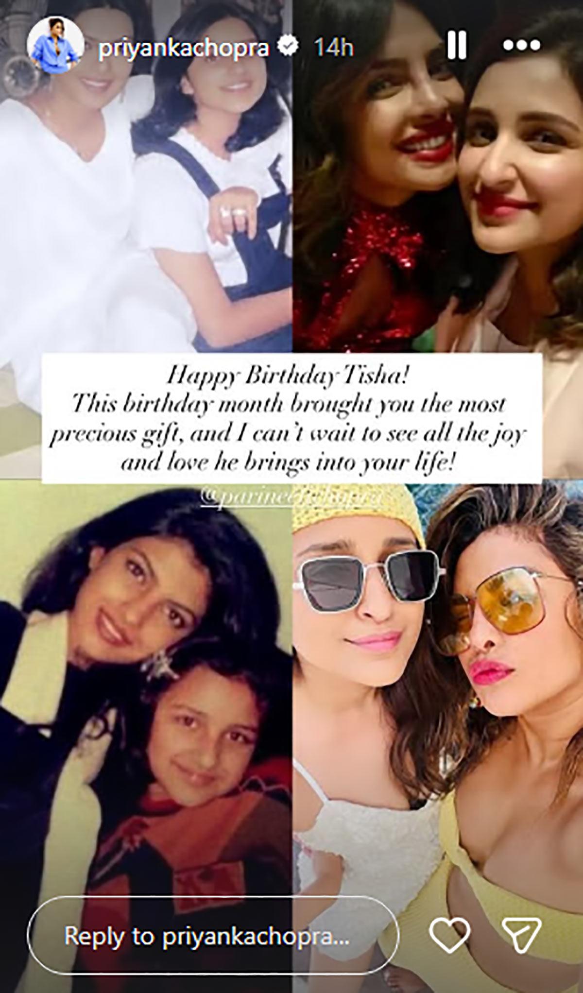 Taking to her Instagram Stories, Priyanka shared a collage of pictures with Pari, saying, 'Happy Birthhday Tisha! This birthday month brought you the most precious gift, and I can't wait to see all the joy and love he brings into your life!'