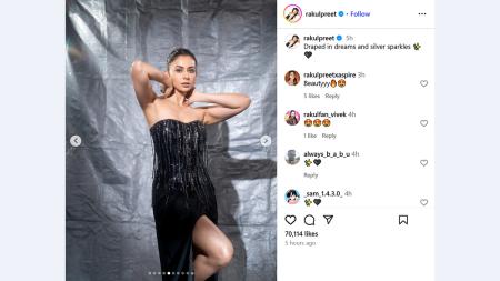 'Draped in dreams and silver sparkles,' says Rakul Singh.